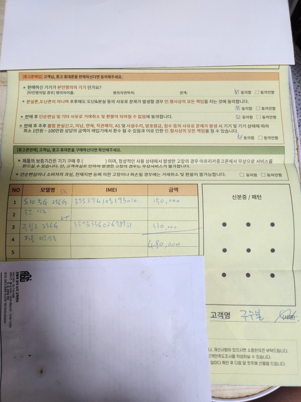 오늘 신도림점에 가서 중고폰을 팔았슨비다